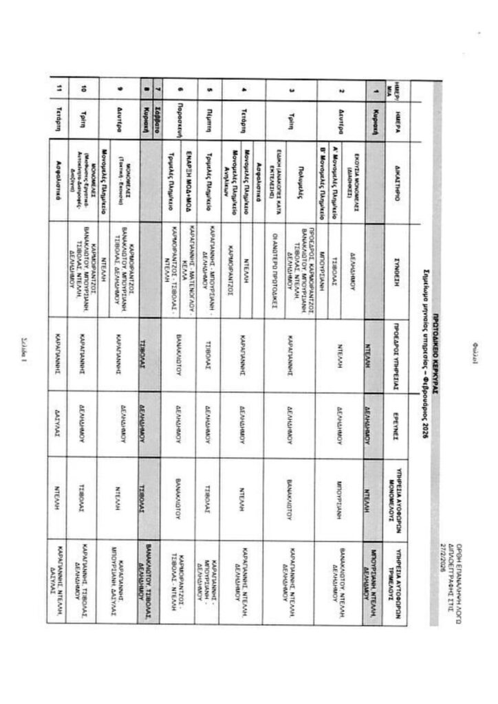 Υπηρεσίες Δικαστών – Φεβρουαρίου 2026