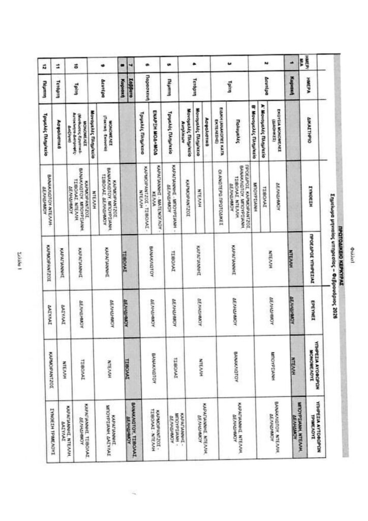 Υπηρεσίες Δικαστών – Φεβρουαρίου 2026